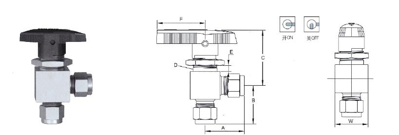 端接尺寸End | 孔径 | A | B | C | D | E | F | W | Cv | |||||||||